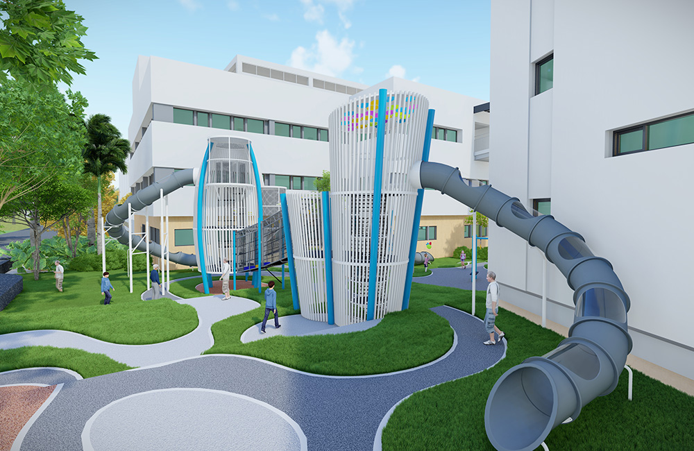 A memorable and engaging playground that promotes exploration, teamwork, and joyful learning.
