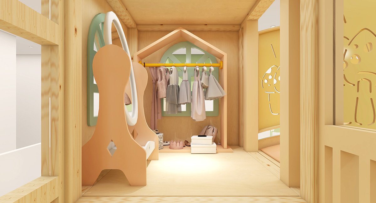 Children engage in familiar scenarios such as cafés, shops, clinics, and workshops. These educational role play activities support language development, social interaction, and real-life skills through role play, making the space ideal for educational indoor playground design and early learning environments.